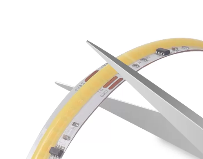 Super flexibleThe light strip is veryflexible that can befreely bend withoutaffecting the functions Cuttable andsolder connectable Cut point marked onevery segment , you cancut the light strip at thecut point according toyour demand