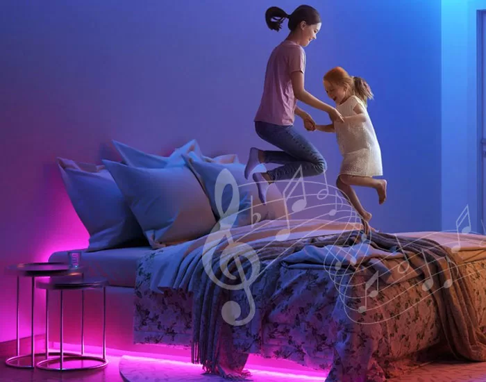 - Built-in music sensor, can receive external music, the color and change of the light, the speed can be synchronized with the rhythm of the music changes.
