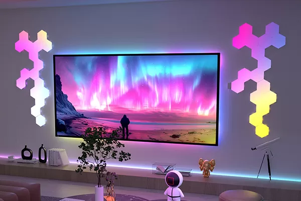 Personalized smart lighting|APP control|Color function|Smart voice|Light and shadow synchronization|Color adjustment HDMI TV Sync Splicing Lamp, through the intelligent control system, easily realize the free adjustment and control of light color, move with the light, change color with the screen, you can enjoy the ultimate experience of the cinema at home. The hexagonal splicing atmosphere light …